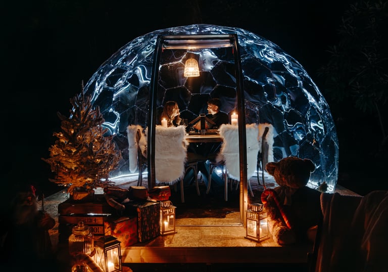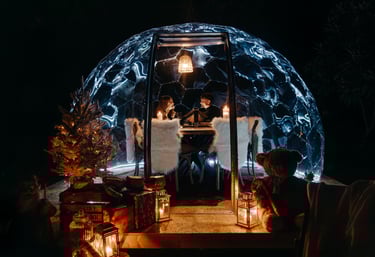 Une expérience culinaire immersive dans une bulle. Vous pourrez savourer une fondue tout en profitant du paysage hivernal provençal dans un cadre intime et chaleureux.