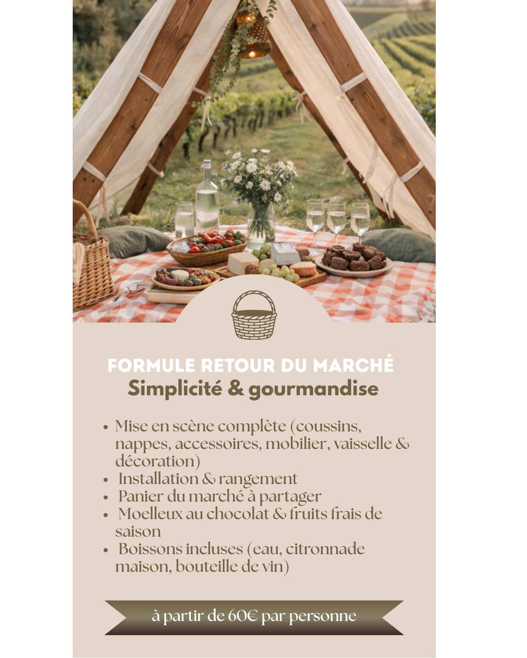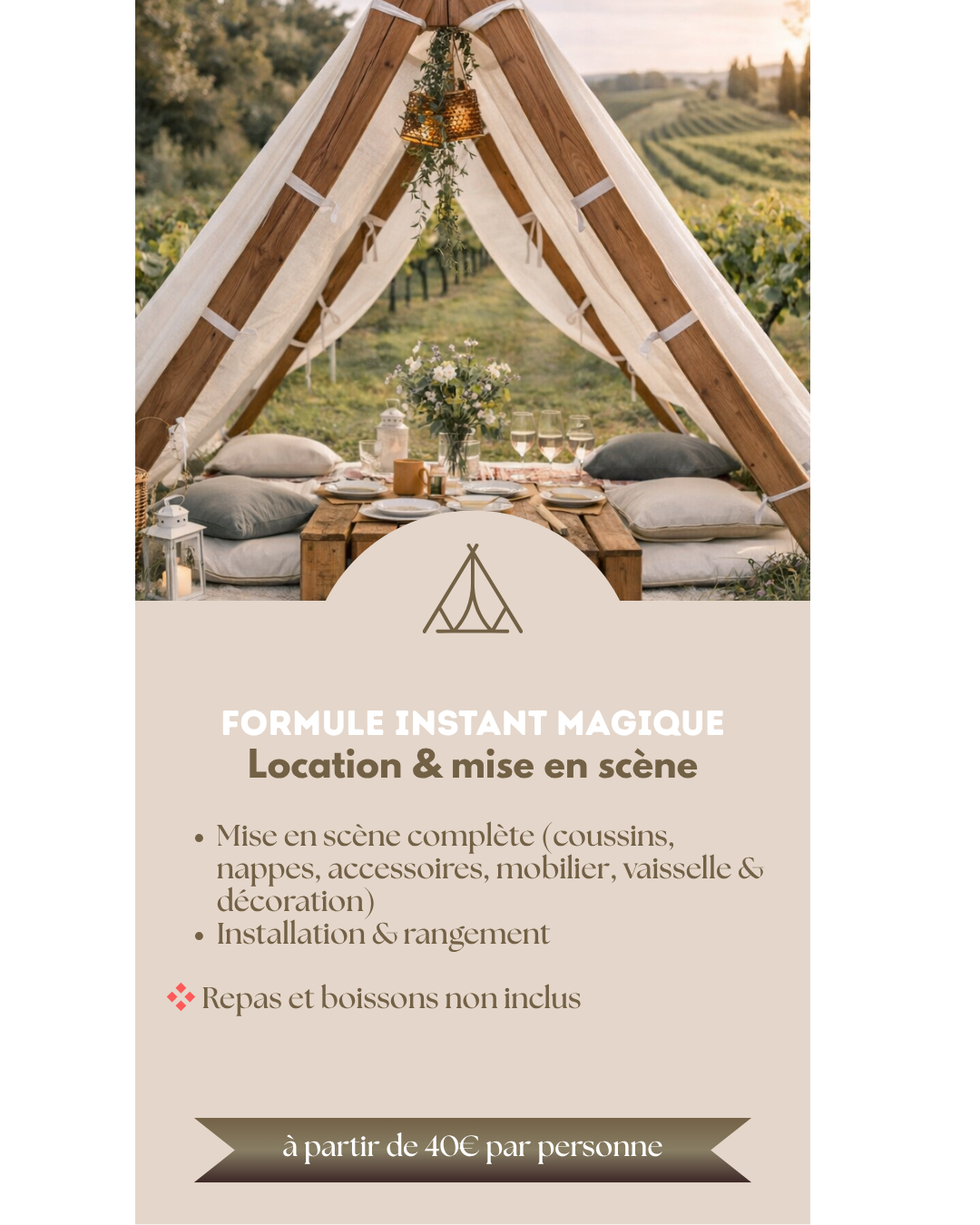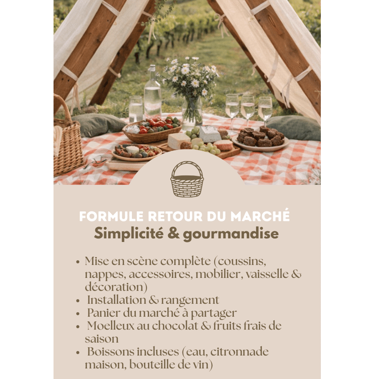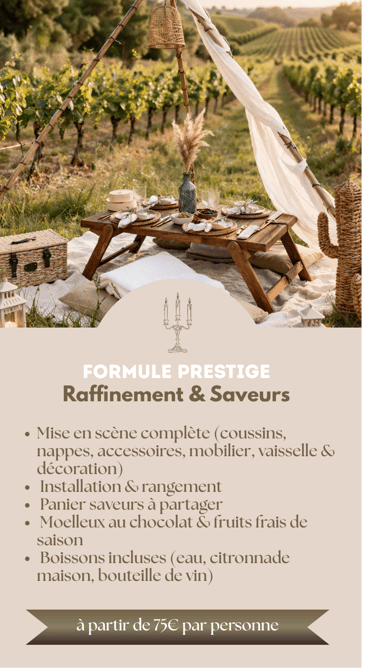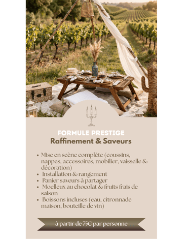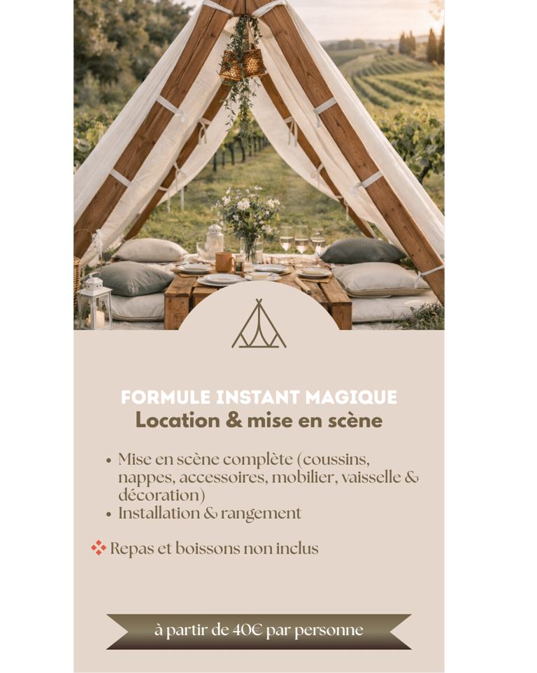 Chaque expérience est pensée comme une véritable mise en scène : un décor soigneusement installé, une table élégamment dressée, et un moment hors du temps à vivre.